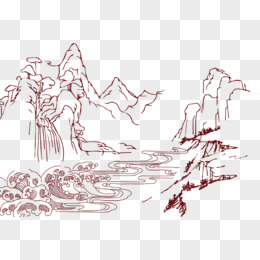 卡通手绘线条山水