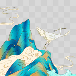 手绘国潮秋季群山金山风景免抠元素