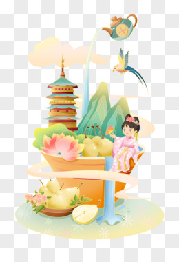 手绘惊蛰国潮春天惊蛰山水组合元素