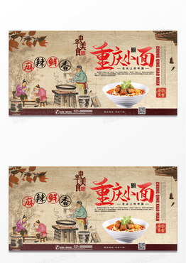 复古中国风风格重庆小面中华特色美食传统文化展板