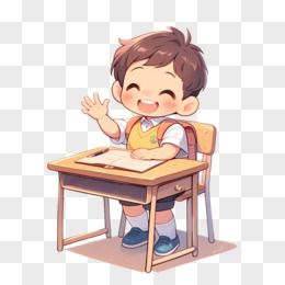 卡通一个穿蓝色短袖校服的初中男生举手免抠元素