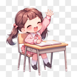 卡通一个穿粉色校服的小女孩举手免抠元素