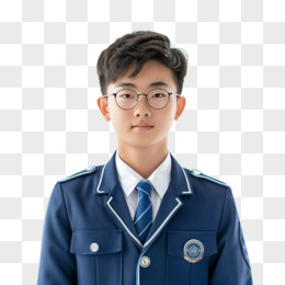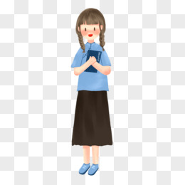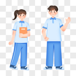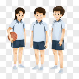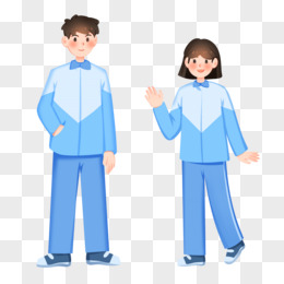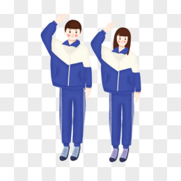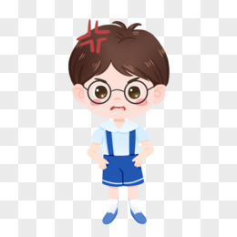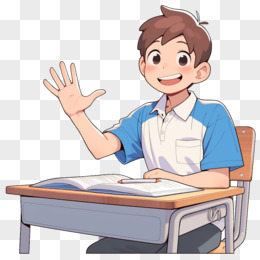卡通一个穿蓝色短袖校服的初中男生举手免抠元素