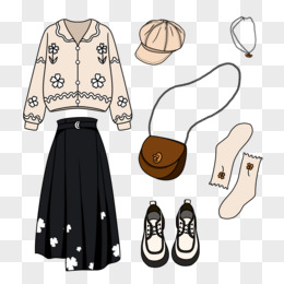 一组手绘文艺范女性秋装穿搭合集之皮鞋免抠元素