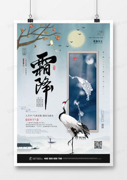 霜降中国风传统节气宣传海报