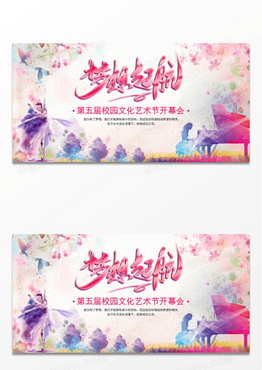 水彩校园艺术节梦想起航背景展板