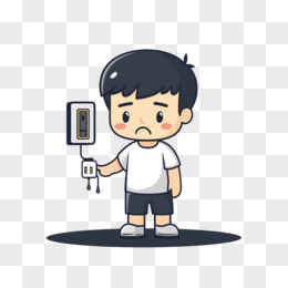 手绘卡通小男孩用湿手触摸插座免抠元素