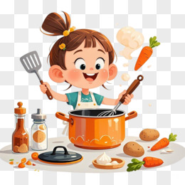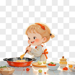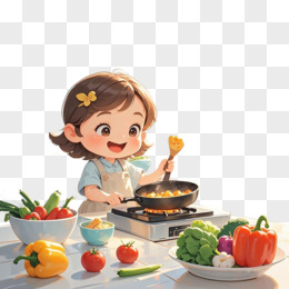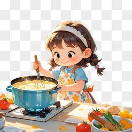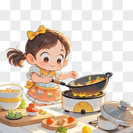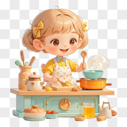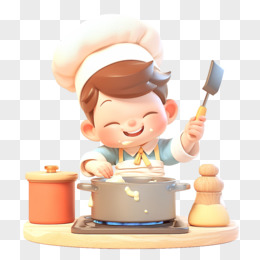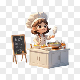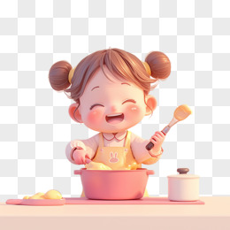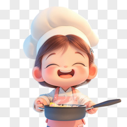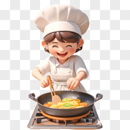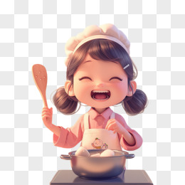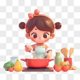 3D卡通小厨娘做饭烹饪料理免抠元素