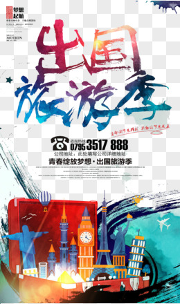 一组手绘扁平风国外代表性建筑群套图合集素材