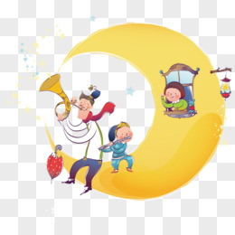 卡通男孩女孩举旗吹号免抠元素