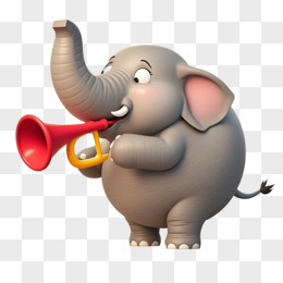 3D可爱的大象在吹喇叭的免抠元素