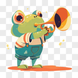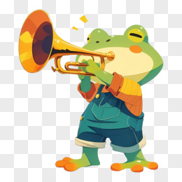 卡通手绘小青蛙吹喇叭元素