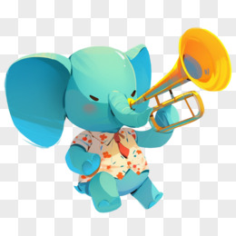 可爱的大象在吹喇叭的免抠元素