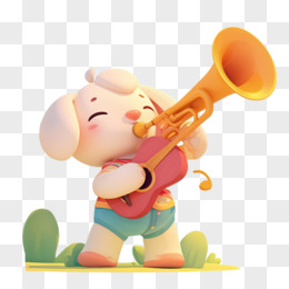 插画风小狗吹喇叭元素