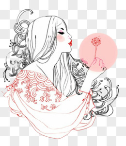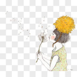 卡通女孩吹蒲公英梦想蘑菇可爱