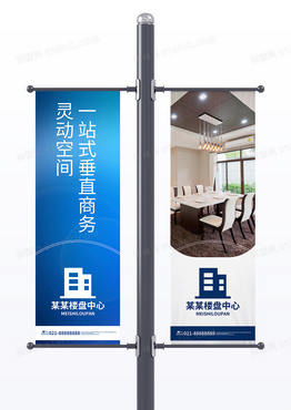 深蓝色大气简约一站式垂直商务灵动空间房地产促销道旗