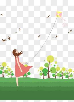 卡通手绘插画风春天儿童女孩抓蝴蝶免抠元素