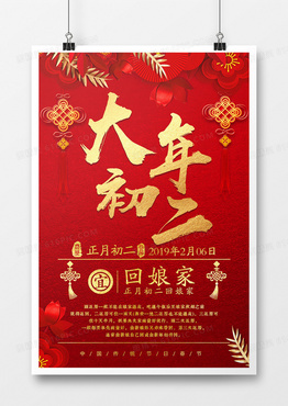 2019年猪年新年大年初二回娘家系列海报大气喜庆风格设计