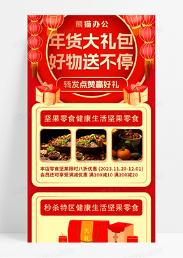 红色简约中国风喜庆年货大礼包好物送不停年货大礼包长图年货节