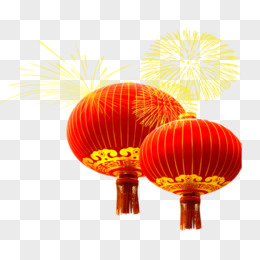 卡通手绘女孩拿灯笼放烟花庆祝元素