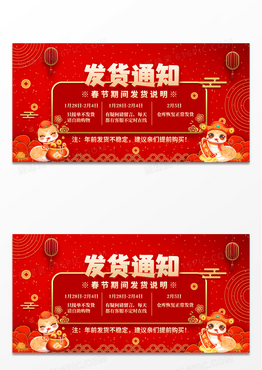 红色时尚国潮风格发货通知2025蛇年春节发货通知展板