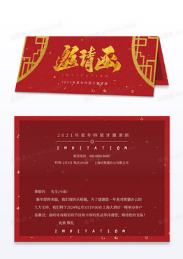 红色喜庆新年聚会团年邀请函模板