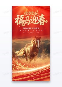 红色2026金马迎新福马迎春摄影风马年喜庆春节宣传海报