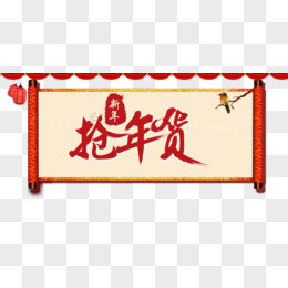 一组手绘水彩年俗物品集合之买年货免抠元素