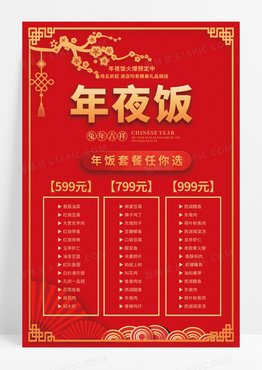 2023红色清新大气简约春节年夜饭菜单春节菜单