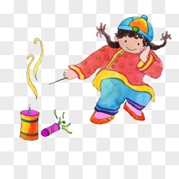 手绘卡通小孩们年初一拜大年场景免抠素材