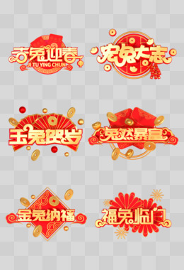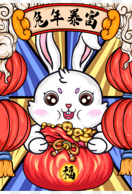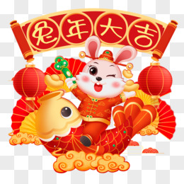 一组插画风兔年兔子合成套图合集之兔年大吉元素