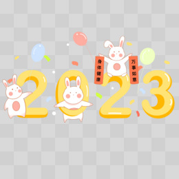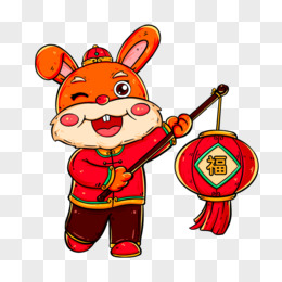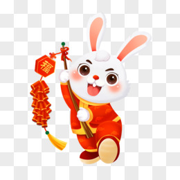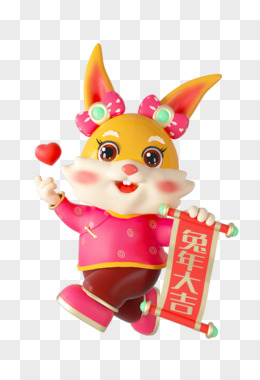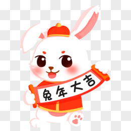 卡通可爱兔子手拿兔年大吉对联素材元素