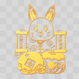 烫金效果兔年大吉大利剪纸传统习俗窗花素材