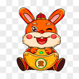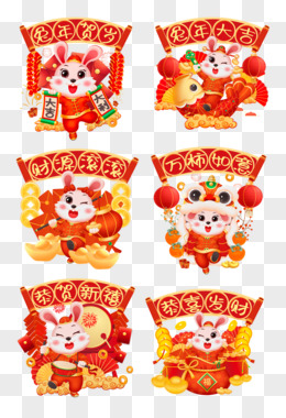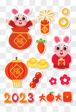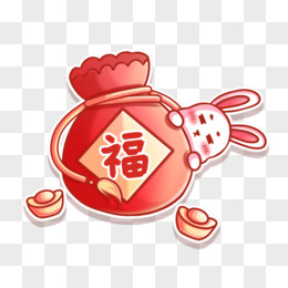 一组手绘免抠新年贴纸套图之兔年福袋素材