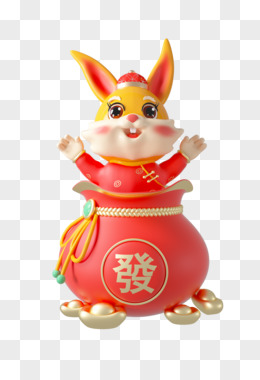 2023兔年新年贺岁c4d喜庆兔子从福袋钻出来素材