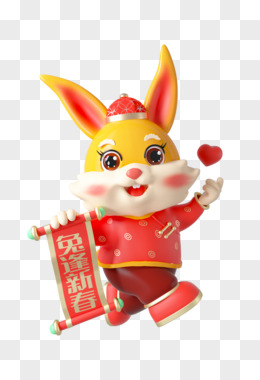 2023兔年新年贺岁c4d喜庆兔子手拿对联素材