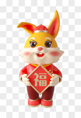 2023兔年新年贺岁c4d喜庆兔子拿着福字素材