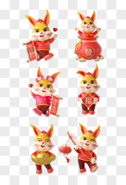 一组插画风兔年兔子合成套图合集之兔年贺岁元素