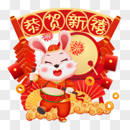 一组插画风兔年兔子合成套图合集之恭贺新禧元素