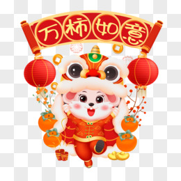 一组插画风兔年兔子合成套图合集之万柿如意元素