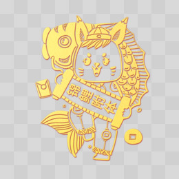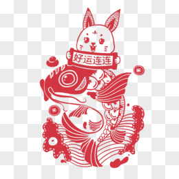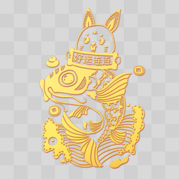 烫金效果兔年锦鲤附体剪纸传统习俗窗花素材
