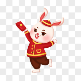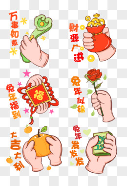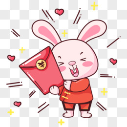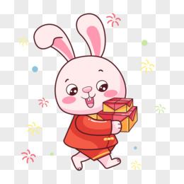 一组卡通兔年新年表情包之手捧新年礼物素材