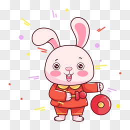 一组卡通兔年新年表情包之抱着锦鲤素材