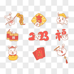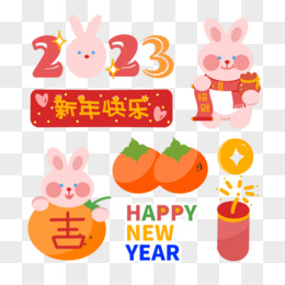 一组手绘2023兔年卡通剪纸系列三免抠元素