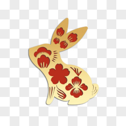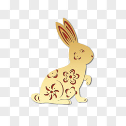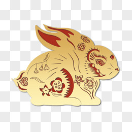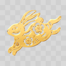 金色立体手绘兔年剪纸风跳跃兔子素材