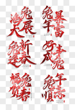 一组红色2023兔年吉祥如意恭喜发财套图设计