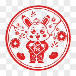 卡通兔年可爱兔子剪纸套图系列二免抠元素