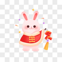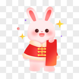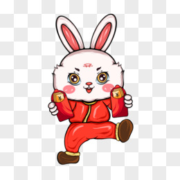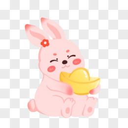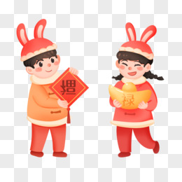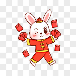 卡通手绘可爱新春一对兔子之手拿红包素材元素