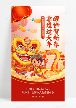 新春春节蛇年醒狮舞狮非遗文化活动海报