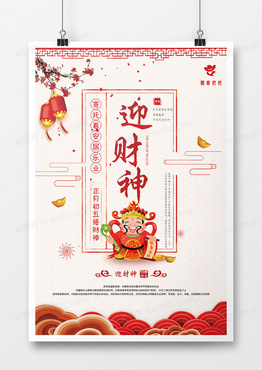 春节喜庆初五迎财神海报